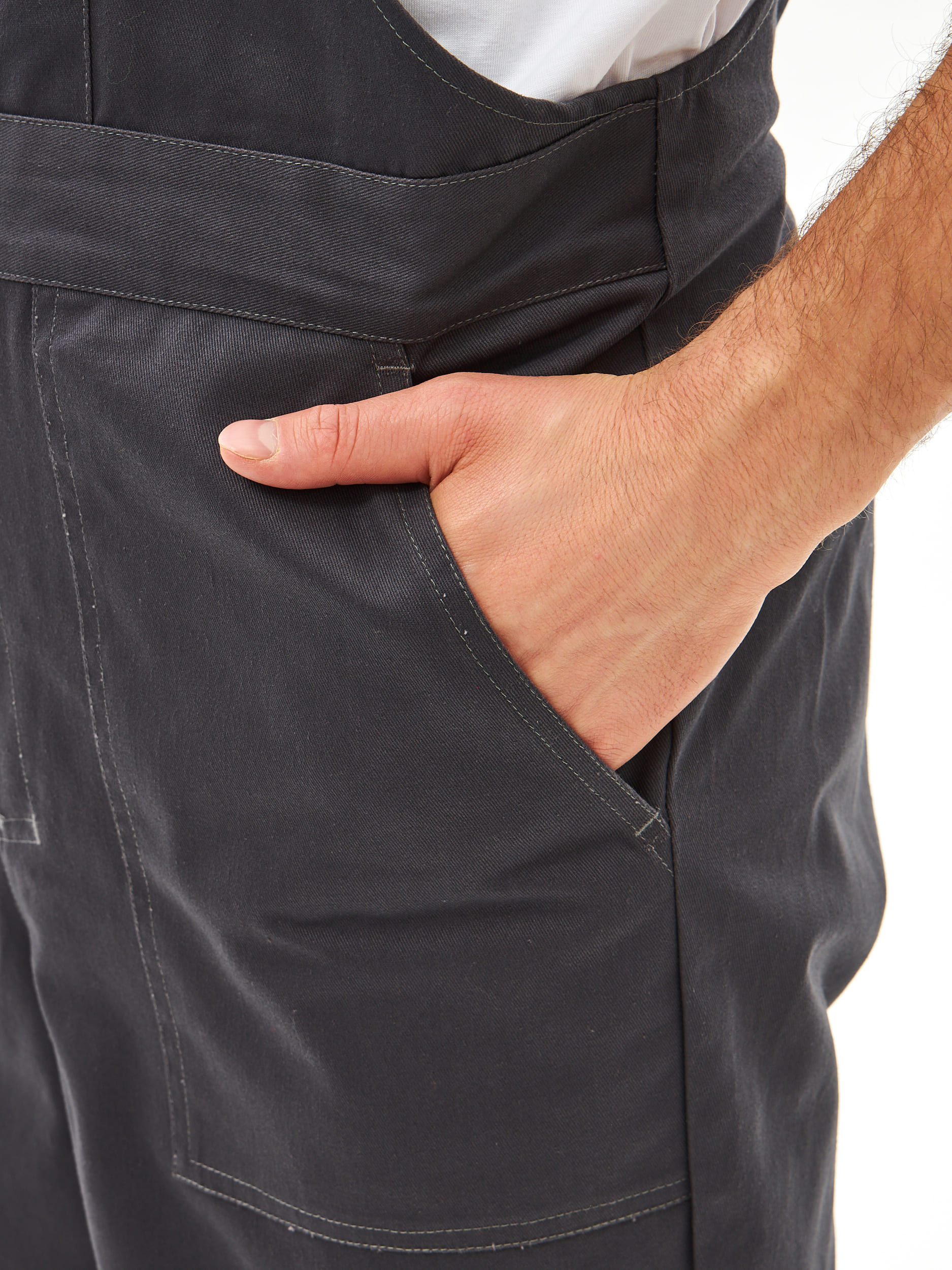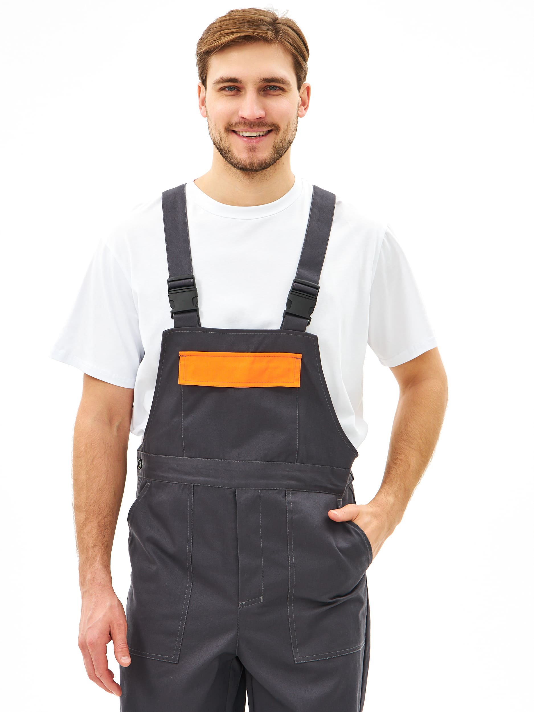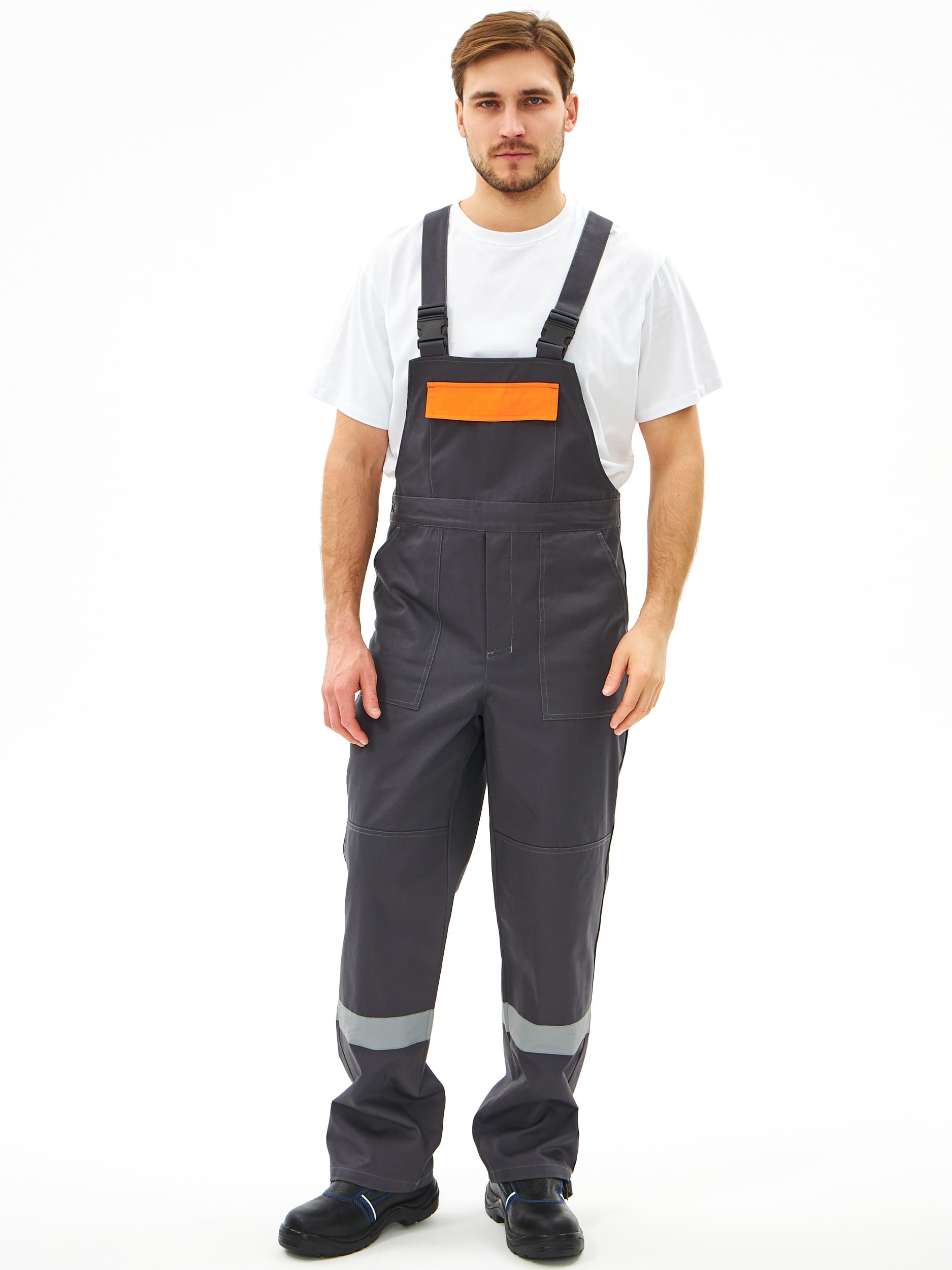- Накладные карманы на передних половинках и нагрудной детали – удобство для хранения инструментов и мелочей.