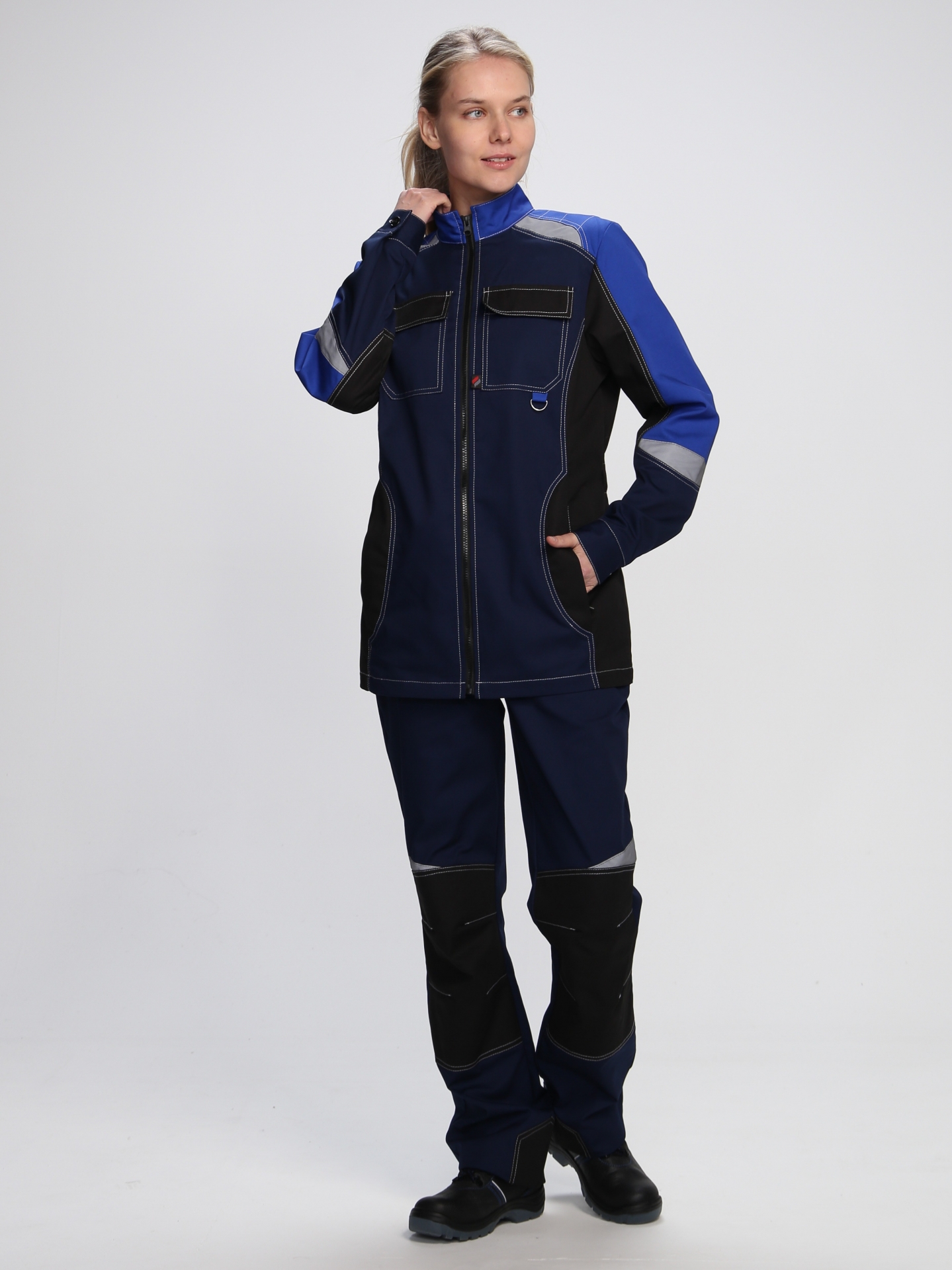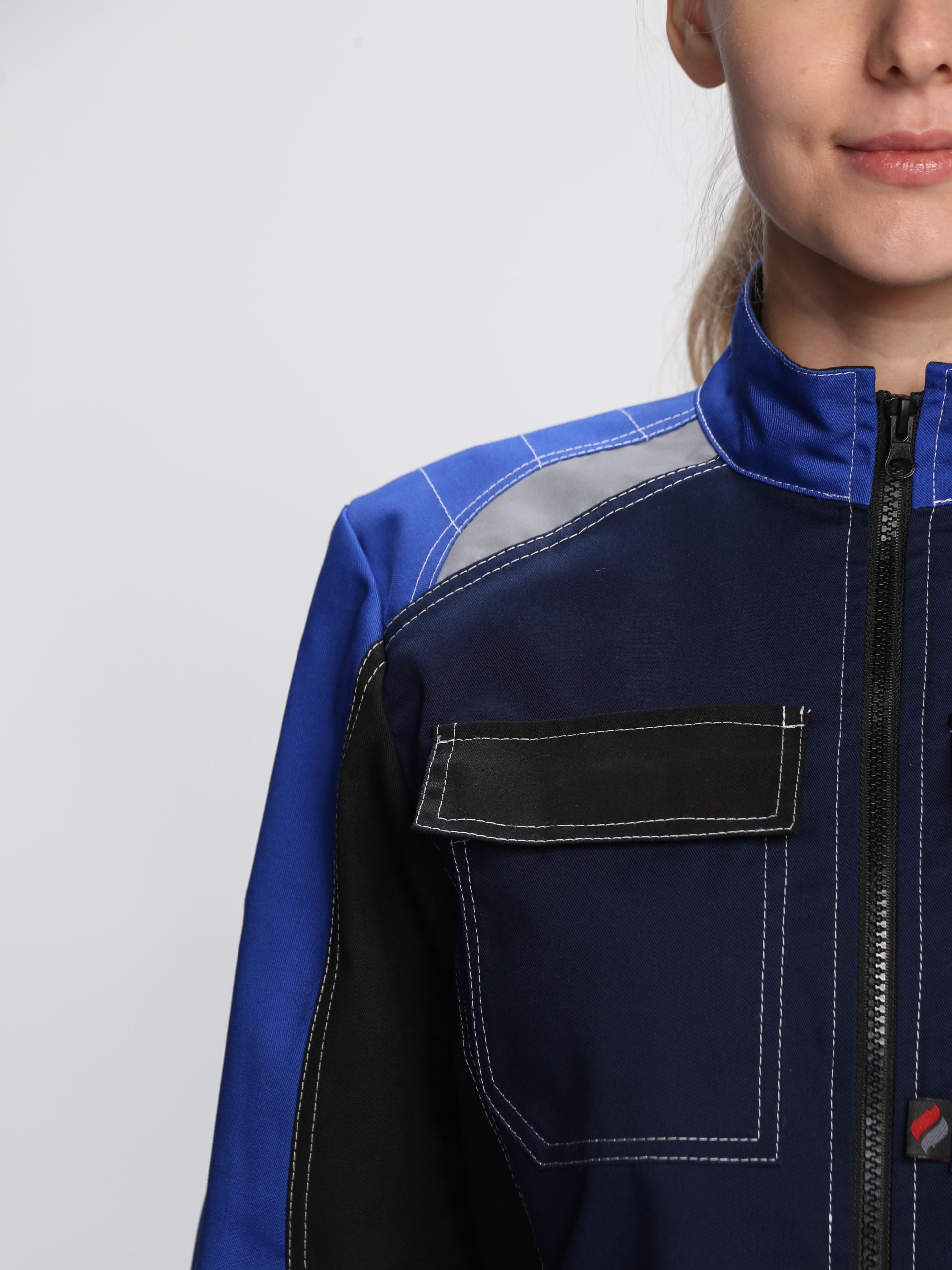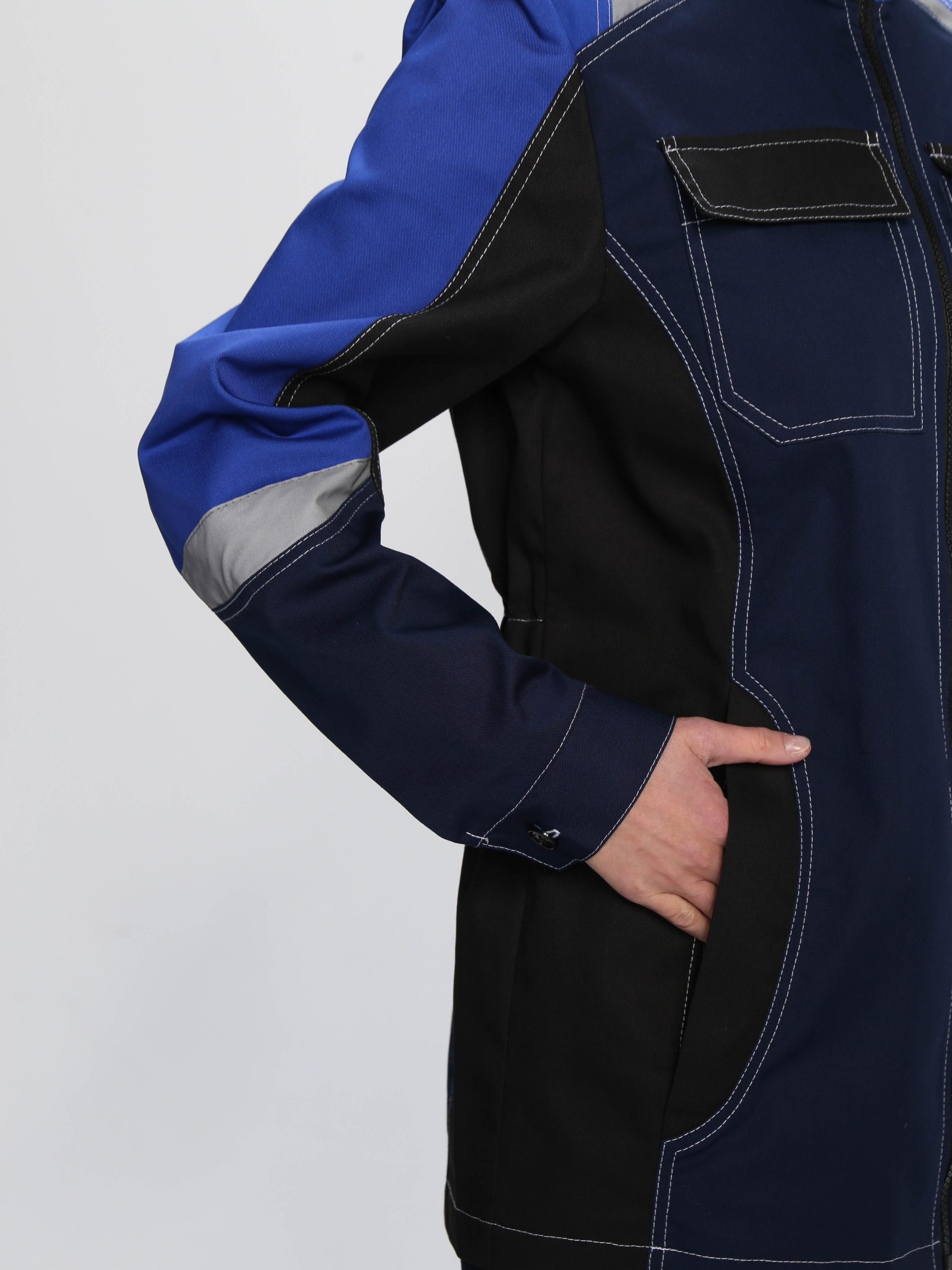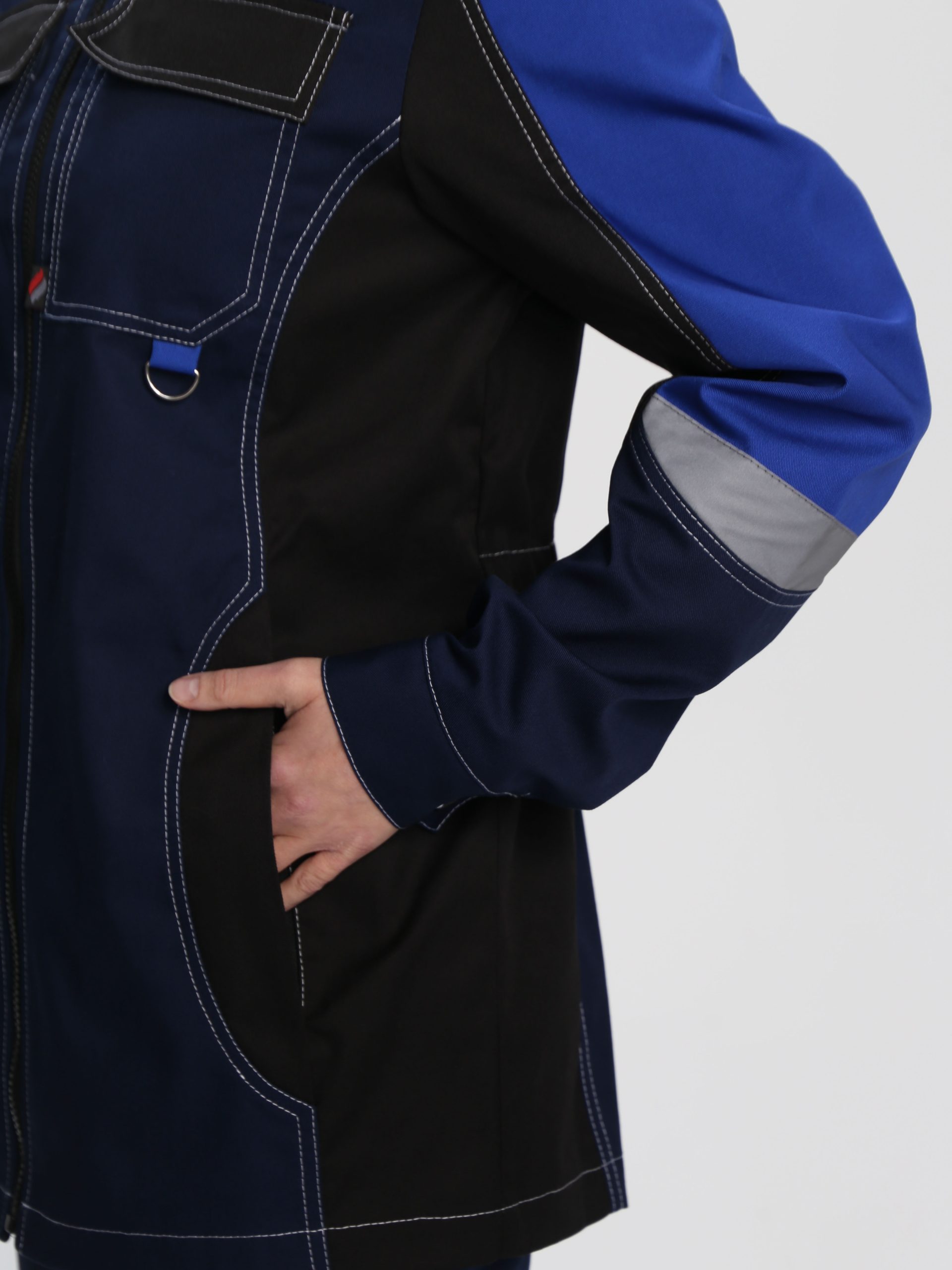 - светоотражающая полоса 50 мм по кокеткам полочек и спинки, по рукавам