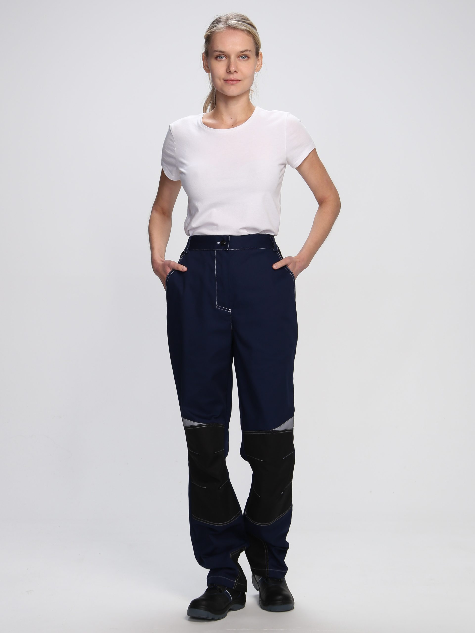 - передние половинки брюк с боковыми карманами с отрезным бочком