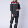 Костюм рабочий женский «Весна-2 СОП NEW» предназначен для защиты от общих производственных загрязнений и механических воздействий. Благодаря широким светоотражающим полосам обеспечивает безопасность работы в темное время суток. Рабочий костюм состоит их двух элементов: удлиненная куртка женская рабочая со скрытой застежкой на пуговицах и полукомбинезон рабочий прямого силуэта с боковой застежкой на пуговицы и петли. Рабочая куртка с внутренней кулиской на резинке отлично прилегает по фигуре и подчеркивает линию талии. Боковые карманы и нагрудный карман справа с отделением для ручки предназначены для хранения мелочей и записей. Полукомбинезон оснащен бретелями с регулировкой по длине и закрывающимся на липучку нагрудным карманом. Рабочая одежда с усилительными накладками в области локтей и колен отличается повышенной износостойкостью и удобством.