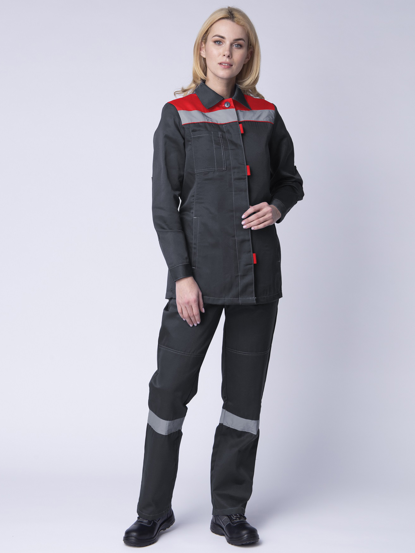 Костюм женский Весна-2 СОП NEW (тк.Смесовая,210) п/к, т.серый/красный